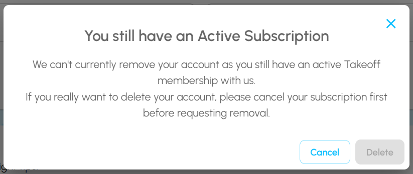 Keep in mind that if you are a Takeoff or First Class member requesting to delete your account, we cannot issue a prorated refund for any remaining time on your subscription, and you will not be able to restore your account once it is removed.