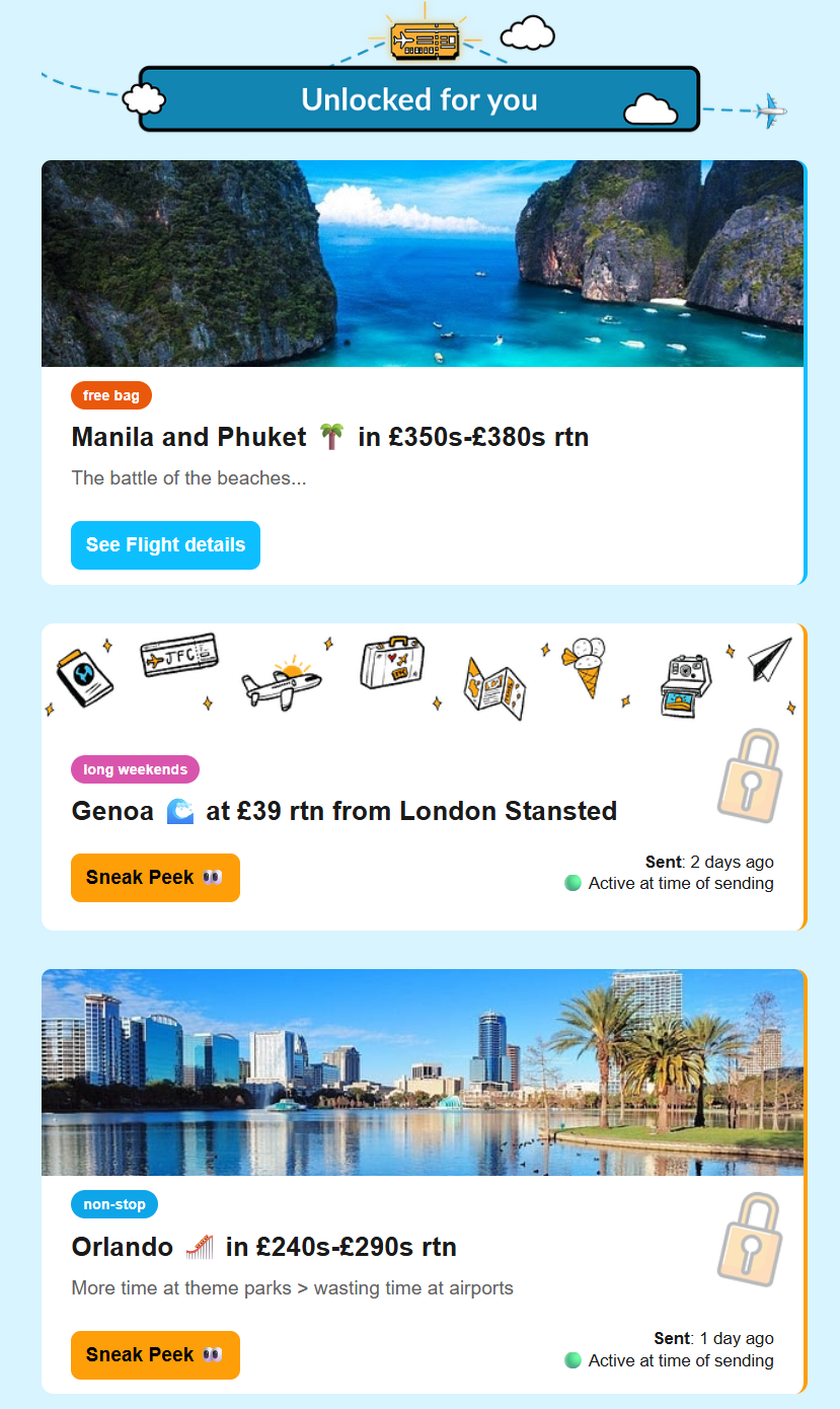 You don’t have to wait for our emails to access the Flights, instead you can check out your unlocked Flights anytime in your Lounge: