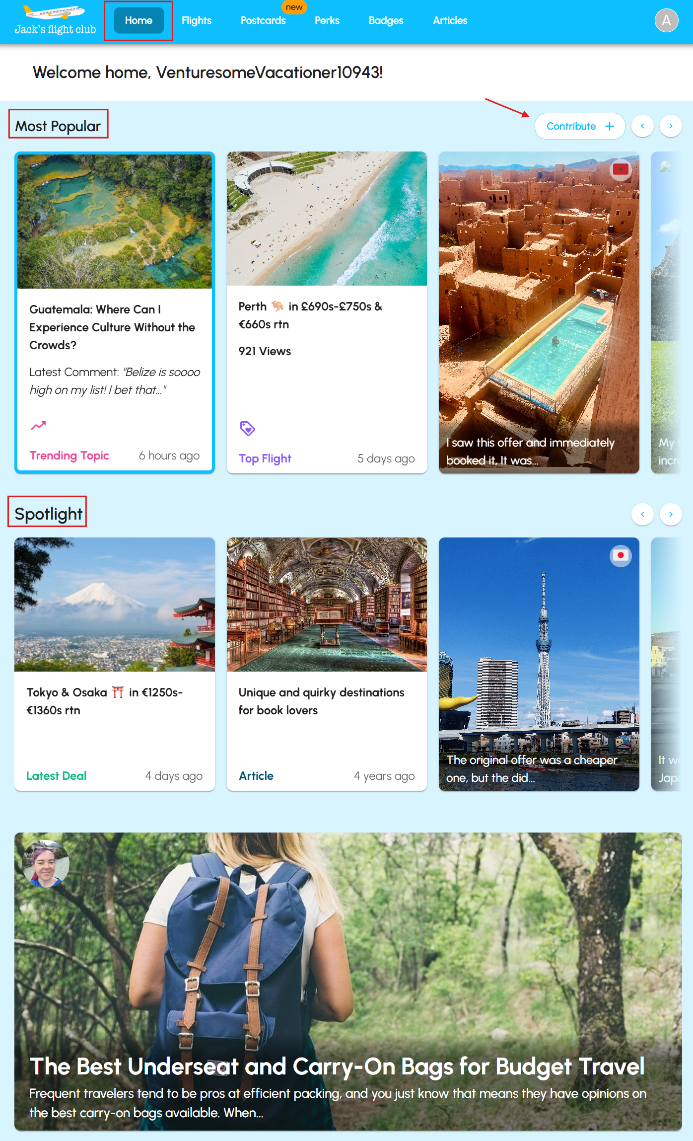 - Most Popular: A collection of trending Flight, an Article with the latest community comments, and recently shared postcards. It’s where you can see what’s catching everyone’s eye across The Club!